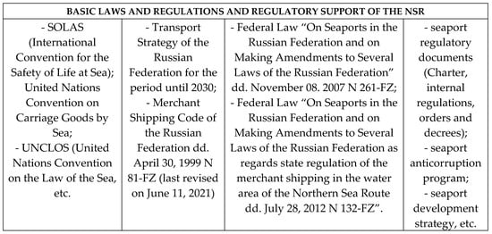 Offshore production will benefit greatly from the development of the Northern Sea Route (hereinafter, the NSR), which is necessary for hydrocarbon production in the Arctic Regions. The benefits are ice management, drifting ice monitoring and iceberg towing. It also holds promise in the delivery of oil and gas from the fields to their destination—especially because of the technical difficulties in laying pipelines for drilling platforms in the Arctic. In addition, emergency preparedness in the event of small oil spills will be required [24,25].