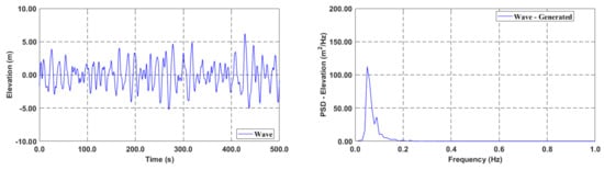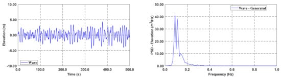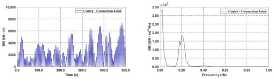 To check the dynamic response of two different connector B.Cs, both systems are simulated under a normal operating sea state. As shown in Figure 11, the wave elevation time history and corresponding input spectrum under 0° heading are plotted.