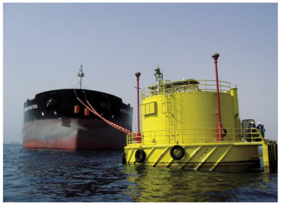- Qi, X.; Chen, Y.; Yuan, Q.; Xu, G.; Huang, K. CALM Buoy and Fluid Transfer System Study. In Proceedings of the 27th International Offshore and Polar Engineering Conference, San Francisco, CA, USA, 25–30 June 2017; ISOPE: Lisbon, Portugal, 2017; pp. 128–932. Available online: https://onepetro.org/ISOPEIOPEC/proceedings-abstract/ISOPE17/All-ISOPE17/ISOPE-I-17-128/17225 (accessed on 13 November 2021).