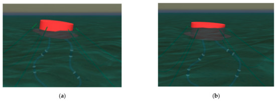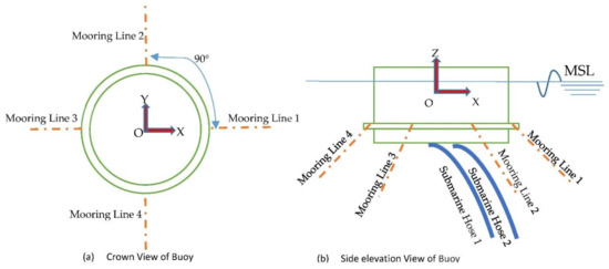 - Sun, L.; Zhang, X.; Kang, Y.; Chai, S. Motion Response Analysis of FPSO’s CALM Buoy Offloading System. In Proceedings of the ASME 2015 34th International Conference on Ocean, Offshore and Arctic Engineering, St. John’s, NL, Canada, 31 May–5 June 2015; Volume 11, p. V011T12A008. [Google Scholar] [CrossRef]