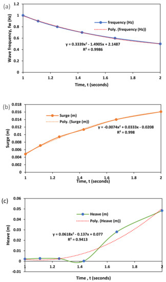 | Frequency, f (Hz) | Period, T (s) | Surge (m) | Heave (m) |