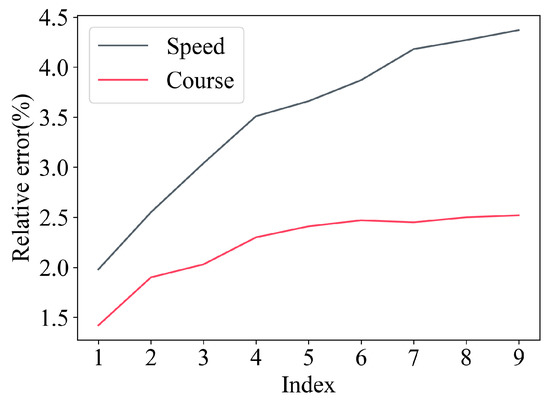 To further verify quality improvement, the samples were tested with the provided method. The experimental results of the proposed method are shown in Table 2, Table 3 and Table 4. The results of the number of critical points deleted by RDP incorrectly are presented in Table 2, where RDP was tested with the threshold of Euclidean Distance, and MCDP was tested with the threshold of Euclidean Distance, angle constraint, and course constraint. From this, we can find that the provided method could retain more characteristic points than RDP. Table 3 and Table 4 is the speed loss and course loss of RDP and MCDP on the dataset with different thresholds. In comparing the results, MCDP (rather than RDP) improved 1.5–2.5% in the average course synchronization error of trajectories and 2–4.5% in the average speed synchronization error of trajectories. From the comparison shown in Figure 10, it is apparent that the trajectory after simplification using MCDP was more similar to the original trajectory than when using RDP for the course difference and speed difference. Table 1 is the measurement, unit, and description of the measurement.
