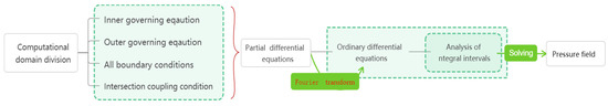 Taking the example of a sub-subcritical mixed flow in the dredged channel, the Fourier transform is used to transform the above governing equations and boundary conditions, and the Fourier transform of other mixed flows is similar. Since the flow field is symmetrical, only the half domain is discussed, and the corresponding Fourier transform pair of the inner or outer domains is taken as: