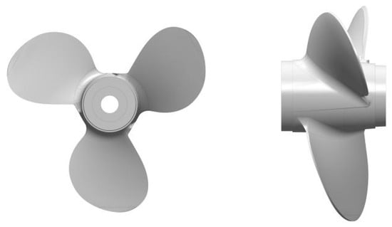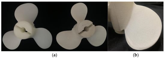 The propeller models selected in the experiment are shown in Figure 9. The models were 3D-printed from 8200 resin. The coating of the hydrophobic propeller model was polyvinylidene fluoride (PVDF) dissolved in dimethylformamide.