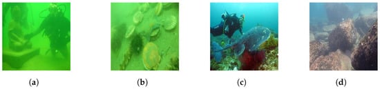 Due to the absorption and scattering of incident light by water bodies, the video images collected underwater generally appear blue-green and have an apparent fog-like effect. In addition, blur, low contrast, color distortion, more noise, unclear details, and limited visual range are the typical problems that degrade the quality of underwater video images [4]. Figure 2 shows some low-quality underwater images. There is obvious color bias in images a and b, and the overall style is green. The problem with image c is low contrast. Image d represents the atomization phenomenon commonly seen in underwater images.