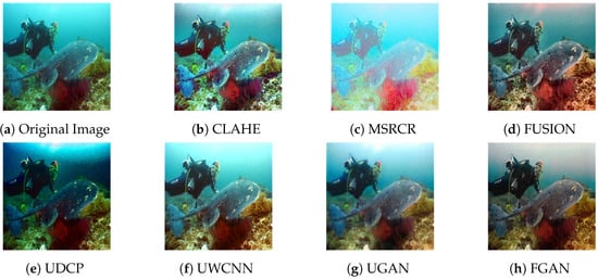 - Li, H.; Li, J.; Wang, W. A Fusion Adversarial Underwater Image Enhancement Network with a Public Test Dataset. Image and Video Processing. Available online: https://arxiv.org/abs/1906.06819 (accessed on 30 June 2019).