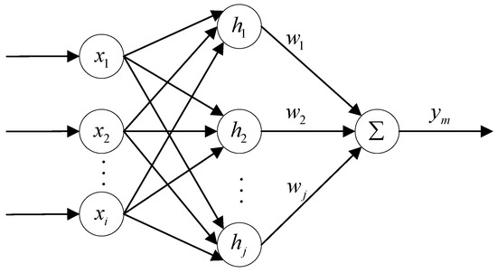 This paper introduces an RBF neural network as shown in Figure 5 to approximate the total modeling uncertainties. The RBF neural network has three layers: an input layer, a hidden layer and an output layer. The neuron activation function of the hidden layer consists of a radial basis function. It has good generalization ability and simple structure. Meanwhile, it can avoid unnecessary and lengthy calculations and can approximate any nonlinear function with arbitrary precision in a compact set [40]. In the RBF neural network, the uncertainty terms are shown by Equation (37):