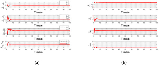 where is the actual estimate of the ideal weight, which is adaptively updated online based on the following Lyapunov stability analysis. Then, Equation (33) can be rewritten as follows: