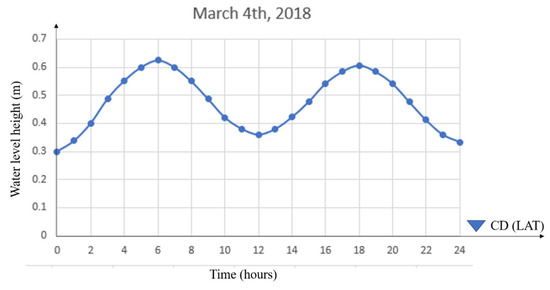 A local tide-based CD is essential in marine engineering applications, and it is produced for the safety of maritime navigation [1]. Traditionally, tide gauge and sounding datasets are used to produce the CD through hydrographic surveying [1,2]. The height separation between tidal datums and datum references, through period observed soundings, are used in hydrographic surveying to determine the vertical control, which is used to reduce seafloor depth to estimate the CD [3]. Although the accuracy of hydrographic surveying in CD estimation is high, this processing makes it difficult to estimate the CD in real time, and the bathymetric surfacing algorithm have difficulty dealing with period sound observations [1,4].