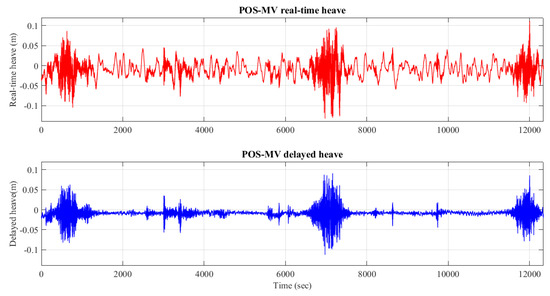 True (delayed) heave and real-time heave from POS–MV system.