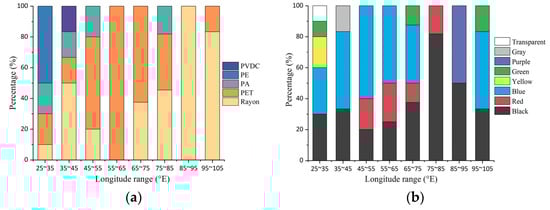 Polymer (a) and color (b) characteristics of microplastics.