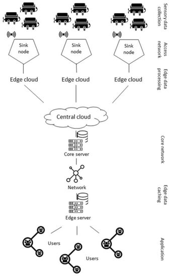Domingo [] proposed the architecture of an IoT network in three layers: (1) perception, (2) network, and (3) application. The main function of the perception layer is to identify specific objects and gather information. It is formed mainly by sensors, actuators, monitoring stations (such as cell phones, tablet PCs, smart phones, and PDAs), nano-nodes, RFID tags, and readers and writers. Depending on the type of sensor, the information to be referred can be the location, temperature, orientation, motion, vibration, acceleration, humidity, or chemical changes, among other details. The collected information is then passed to the network layer for its secure transmission to the information processing system. This network layer consists of converging, privately owned, wired, or wireless networks where the transmission technology can be chosen (e.g., 3G, UMTS, Wi-fi, Bluetooth, infrared, or ZigBee) depending upon the features of sensor devices. Its main function is to transfer the information obtained from the perception layer to the middleware layer. It receives the information from the network layer, stores it in the database, and autonomously makes some decisions based on the results and the agreed protocols. The application layer provides global management based on the object’s information processed in the middleware layer. Finally, the business layer is responsible for the overall management of the IoT system, including applications and services. In particular, this layer eventually builds management models, graphs, and flowcharts, and it proposes the future actions and operative strategies based on the data received from the application layer [].