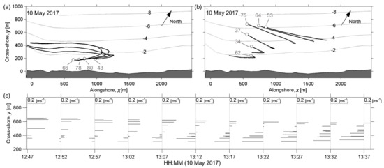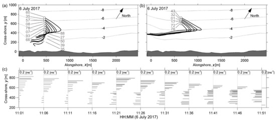 - Schmidt, W.; Guza, R.; Slinn, D. Surfzone Currents Over Irregular Bathymetry: Drifter Observations and Numerical Model Results. J. Geophys. Res. 2003, 110, C12015. [Google Scholar] [CrossRef]