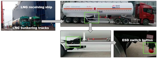 The LNG bunkering consists of the following main steps: preparation, connection (between bunkering side and receiving side), purging, inerting, pre-cooling, LNG transfer, purging, and disconnection. These steps are all involved with human behavior. The complex mechanism that lies behind human behavior leads to human errors. From a Bowtie model-based risk assessment perspective [9], human errors may: (1) contribute to causes of a hazardous event; (2) be the direct triggering events or even sole triggering event for the hazardous event; (3) be related to the safety barriers of potential consequences. For example, Figure 1 shows a truck-to-ship LNG bunkering scenario; as a safety barrier, an operator should press a manual emergency shutdown (ESD) switch button immediately when leakage is observed. Possible human error modes for this operation could comprise: the operator not pressing the switch button, or the operator pressing the button too late. These human error modes lead to different occurrence probabilities of consequences.