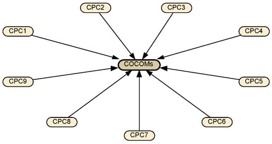 In order to deal with the uncertainty and to capture the conditional independence relationships between the interacting variables, the probabilistic graphical models could be employed. Generally, there are two main probabilistic graphical models, namely, the Bayesian networks (BNs) and the Markov Random Fields. The BNs are directed acyclic graphs with variables representing observable or latent variables of the model. However, the Markov Random Fields are undirected acyclic graphs that might contain cycles, they thus can describe a different set of dependency relationships than their BN counterparts. In this research, a directed acyclic graph is able to establish the causal relationships between the CPCs and the COCOMs; therefore, the BN is employed to calculate the probabilities of COCOMs.