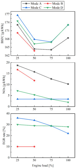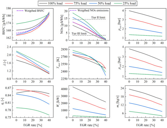 - Constraints: ≤ 3.4 g/kWh, 20 < < 40. It should be noted that additional performance optimisation goals can be achieved by adjusting the constraint values of the upper and lower limits of the EGR rate at each load.