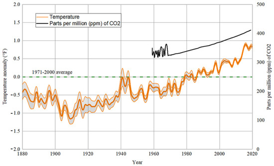 - Anderson, T.R.; Hawkins, E.; Jones, P.D. CO2, the greenhouse effect and global warming: From the pioneering work of Arrhenius and Callendar to today’s Earth System Models. Endeavour 2016, 40, 178–187. [Google Scholar] [CrossRef] [Green Version]