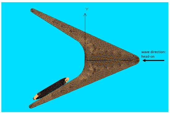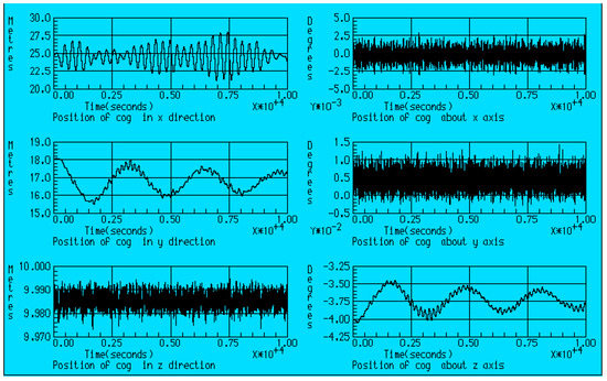 Figure 7. As expected, in all load cases, the structure oscillates within an acute angle to the incoming waves. Due to the asymmetry of the system, caused by the ship berthed to one side of the Delta, the point of equilibrium of the motion is not along the symmetry axis of the Delta.