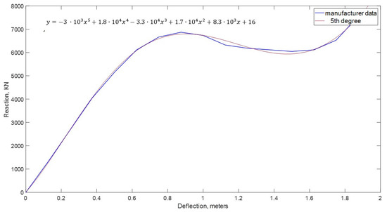 In terms of fender loading (compression), for significant wave heights of up to 2.5 m (load cases c1, c2 and s1, s2), the maximal reaction force does not reach the maximal nominal values of the fenders and, therefore, the maximal deflection is less than 35%.
