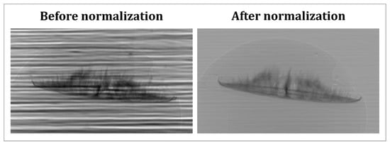 Prior to reconstruction, data were normalized to account for beam inhomogeneities using an in-house Octave-based reconstruction pipeline in the labs of the Charité, Universitätsmedizin (Berlin, Germany). Specifically, for each scan, the radiograms were background-corrected by normalization with best-fitting (minimum variance) empty beam (flat-field) images, obtained both before and after each scan, and corrected by subtraction of dark-current images (Figure 2). Reconstruction was performed by the filtered back projection method using nRecon (v 1.7.4.2, Brucker micro-CT, Kontich, Belgium) to generate 3D datasets from cross-sectional 2D images (Figure 1b). Tomographic datasets were visualized and further processed in 3D using Dragonfly (v 2021.3, Object Research Systems—ORS, Montreal, Quebec, Canada) (Figure 1c,d) [], with additional stack analyses performed in FIJI [].