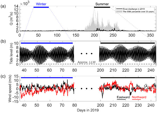 - Gong, W.; Shen, J. The Response of Salt Intrusion to Changes in River Discharge and Tidal Mixing During the Dry Season in the Modaomen Estuary, China. Cont. Shelf Res. 2011, 31, 769–788. [Google Scholar] [CrossRef]