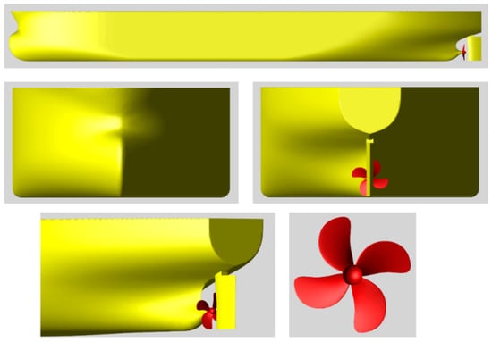 The target ship and propeller are the 158k oil carrier and KP888, as shown in Table 2 and Figure 6, respectively. The design speed and scale ratio are also 15.7 knots and 32.8, respectively.