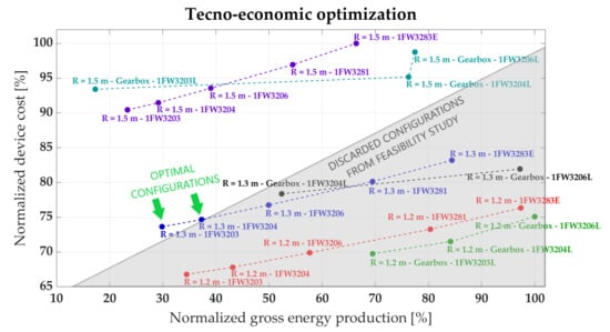- Sirigu, S.A.; Foglietta, L.; Giorgi, G.; Bonfanti, M.; Cervelli, G.; Bracco, G.; Mattiazzo, G. Techno-Economic optimisation for a wave energy converter via genetic algorithm. J. Mar. Sci. Eng. 2020, 8, 482. [Google Scholar] [CrossRef]