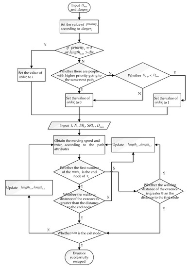 If the evacuation network topology is to be applied to the evacuation model of this paper, the attributes defined by the above nodes and paths are not enough to meet the requirements. In order to use the priority evacuation model in this paper to simulate the evacuation on the evacuation network topology, this paper expands the attributes of nodes and paths. The detailed descriptions are shown in