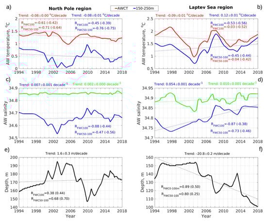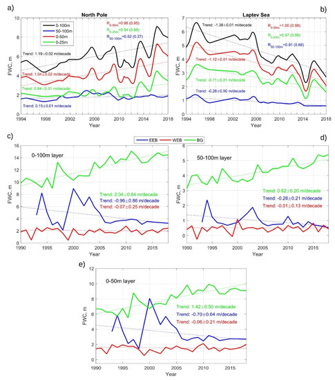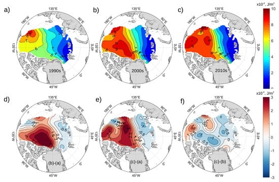 - Häkkinen, S.; Proshutinsky, A. Freshwater content variability in the Arctic Ocean. J. Geophys. Res. 2004, 109, C03051. [Google Scholar] [CrossRef]