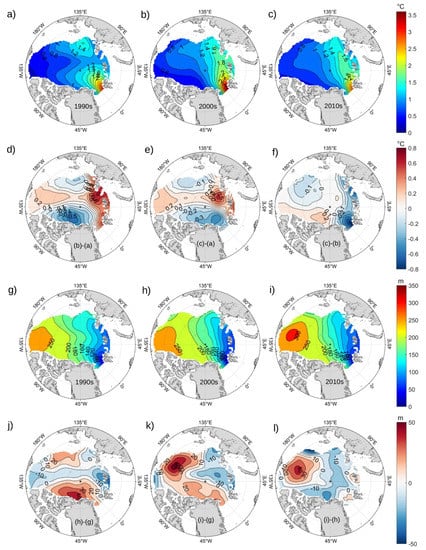- Dmitrenko, I.A.; Polyakov, I.V.; Kirillov, S.A.; Timokhov, L.A.; Frolov, I.E.; Sokolov, V.T.; Simmons, H.L.; Ivanov, V.V.; Walsh, D. Toward a Warmer Arctic Ocean: Spreading of the Early 21st Century Atlantic Water Warm Anomaly along the Eurasian Basin Margins. J. Geophys. Res. 2008, 113, C05023. [Google Scholar] [CrossRef]