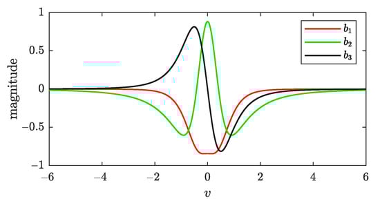 According to (19)–(21), variables constitute a set of linearly independent functions due to the fact that the they are not equal to zero in the domain of v [19]. Therefore, these three functions can be transformed to orthonormal bases by the Gram–Schmidt procedure as follows:
