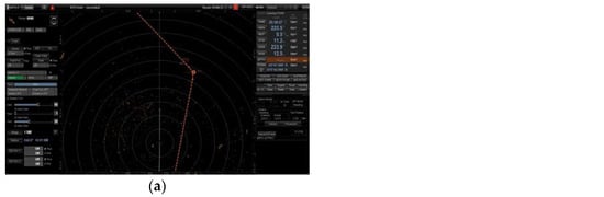 The images of marine radar and ice radar at the same time point (note that there may be a time difference between the two radars or two sensors) were captured, respectively, as shown in Figure 2a and Figure 3a; both radar images were saved in three-dimensional matrix form. Through image measurement software, the basic information such as image size, the range of region of interest (ROI), display orientation, range and interval of the radar distance scale ring, the position of the own-ship, and the short-term target position were obtained.