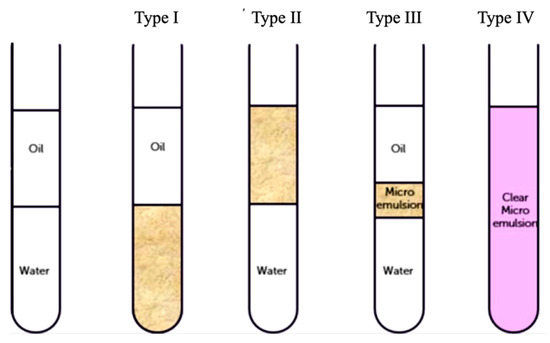 Different types of emulsions proposed by Winsor.