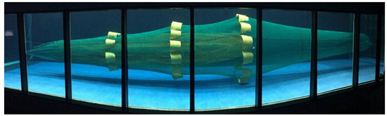 Each codend was tested in the flume tank located at the Center for Sustainable Aquatic Resources (CSAR), Fisheries and Marine Institute of Memorial University, St. John’s, NL, Canada. The test section of the tank was 22.3 m long, 8.0 m wide, and 4 m deep. The side observation window was 20 m long and 3 m high. Maximum water speed (towing speed) was 1.0 m/s (see Winger et al. [26] and Kebede et al. [37] for details).