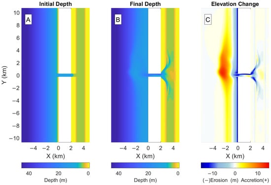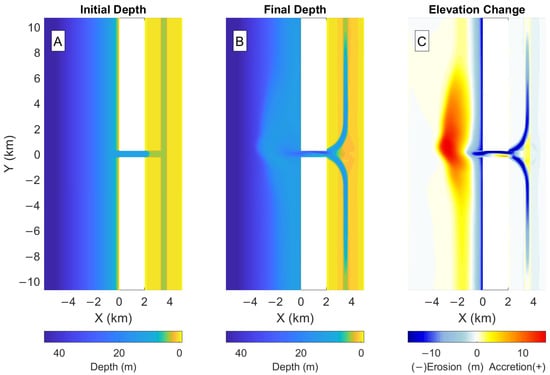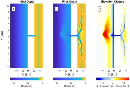 - Styles, R.; Brown, M.E.; Brutsché, K.E.; Li, H.; Beck, T.M.; Sánchez, A. Long-Term Morphological Modeling of Barrier Island Tidal Inlets. J. Mar. Sci. Eng. 2016, 4, 65. [Google Scholar] [CrossRef] [Green Version]