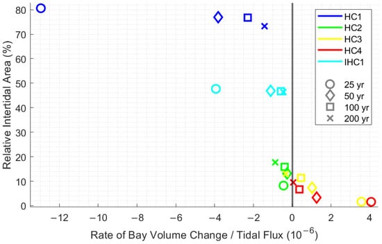 3.2.3. Intertidal Area vs. the Rate of Bay Volume Change