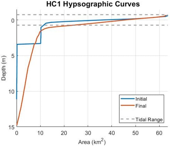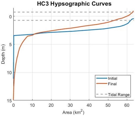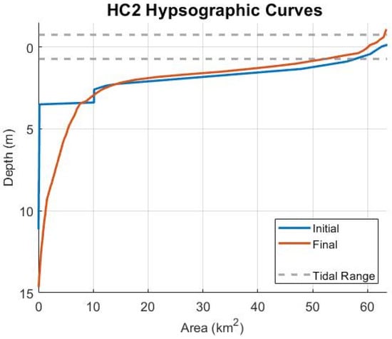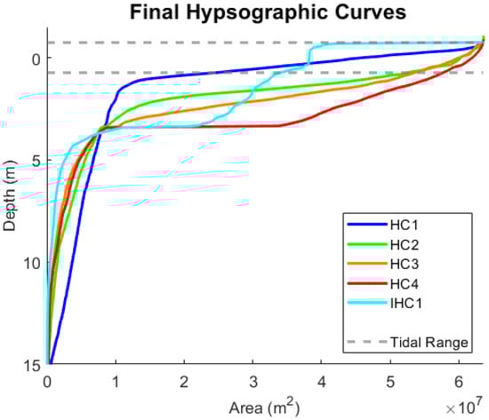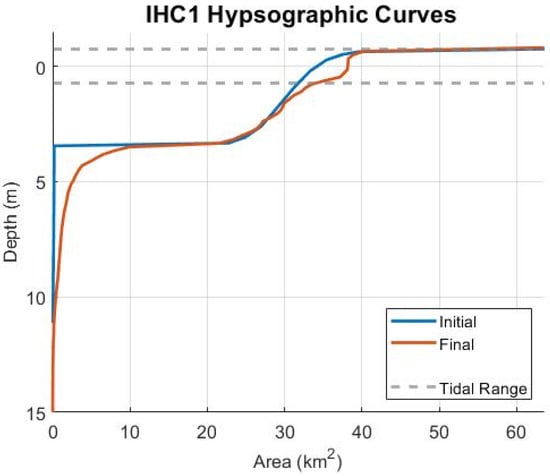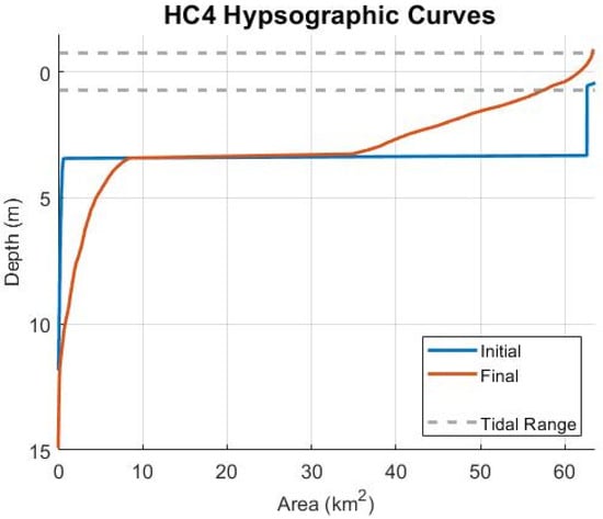 3.4.1. Hypsometry in Ebb-Dominant Simulations