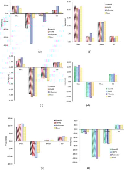 | Cases | Aramid (kN) | HMPE (kN) | Polyester (kN) | Steel Wire (kN) | |