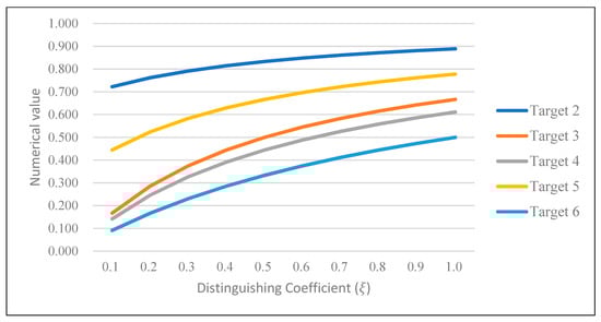 where , is the distinguishing coefficient and ∈ [0, 1]. is used to weaken the situation where the value of is too large and distorted. will change the relative value of but does not affect the ranking of the Grey correlation degree [32,33,34]. As shown in Equation (5):