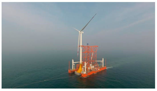 With the rapid development of economy and urbanization in various countries, the increase in energy demand and the burning zone of fossil fuels have led to energy crises and environmental problems [1,2]. The development of renewable energy is beneficial to the environment and economy [3]. Wind energy technology is mature and low in cost, and it is an effective energy solution. Compared with onshore wind power, offshore wind power has the characteristics of high energy density, low turbulence, low wind shear, and low noise [4], and it is expected to become one of the main energy sources in the future. The offshore wind turbine is a high-rise structure, and the main transmission to the top of the foundation is the large bending moment and horizontal load. The fixed foundation types currently used in offshore wind power mainly include gravity-type foundation structure, pile foundation structure, jacket foundation structure, and bucket foundation [5]. Gravity-type foundation applies to sea areas below 10 m, suitable for hard clay, sand, and rock ground. The single-pile structure is suitable for the sea area with water depth below 30 m. With the increase of water depth and larger capacity of single machine assembly, the diameter, wall thickness, and length of the single pile foundation have sharply increased, and the construction cost has increased sharply. The jacket foundation is suitable for transitional water depths of 30–60 m [5]. It requires offshore piling, hoisting the transition section and the upper wind turbine, which requires longer time for offshore operations and higher construction costs. The bucket foundation is a new type of foundation with an opening at the bottom and a seal at the top [6], which is increasingly used in offshore wind turbine foundations [7,8,9]. The bucket foundation which can be installed quickly has the advantages of low cost, easy recycling, and environmental friendliness. The first bucket foundation for offshore wind power was installed in the Frederikshavn wind farm in Denmark in 2003 [10]. In 2010, China’s first 2.5 MW CBF was installed in Qidong, in the southeast of Jiangsu province [11,12], which was proposed by Tianjin University based on China’s hydrological and geological conditions [13]. In 2017, two 3 MW CBFs were installed in Xiangshui, realizing the one-step installation of offshore wind turbines [14], as shown in Figure 1. In 2018, 11 sets of 3.3 MW and 2 sets of 6.45 MW CBFS were installed in the Dafeng Wind Farm in Jiangsu Province, marking the initial realization of large-scale application [15,16], as shown in Figure 2. Studies found that the CBFS can be towed by itself, planting wind turbines like trees, which is a low-cost and environmentally friendly foundation [17,18,19].