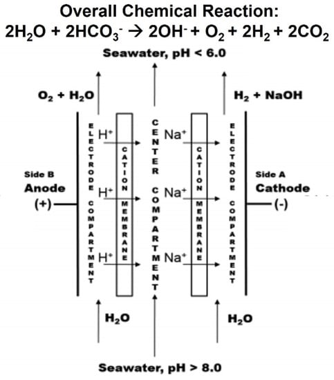- Willauer, H.D.; DiMascio, F.; Hardy, D.R.; Williams, F.W. Development of an Electrolytic Cation Exchange Module for the Simultaneous Extraction of Carbon Dioxide and Hydrogen Gas from Natural Seawater. Energy Fuels 2017, 31, 1723–1730. [Google Scholar] [CrossRef]