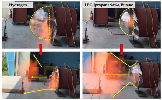 Although many such studies have been conducted, comparative studies on hydrogen and hydrocarbon-based combustible gases have mainly focused on hydrogen and methane–air mixtures. These studies have helped develop the experimental methodologies for identifying the ignition energy, explosion limit, and explosion overpressure of gases, which are the principal parameters of LNG and LPG risks in chemical industries and households.