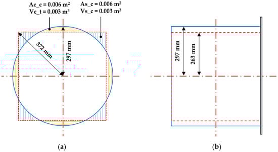 Differences in geometrical cross-sectional area region and plane section length between the cylindrical and square chambers; (a) Cross-section area comparison, (b) Plane-section length comparison.