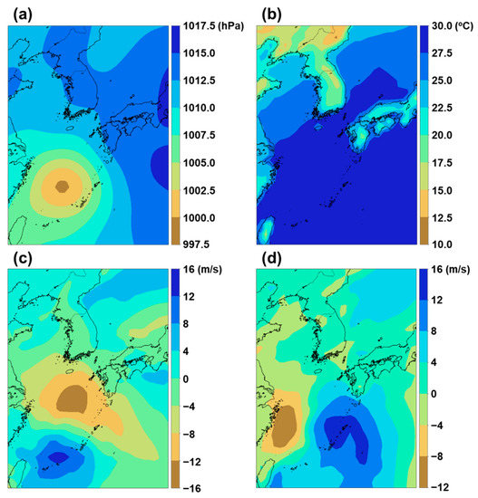 In this paper, the typhoon data was provided by “Korea Meteorological Administration (KMA)” at http://www.weather.go.kr (accessed on 31 January 2022). The tidal station data was provided by “Korea Hydrographic and Oceanographic Agency (KHOA)” at http://www.khoa.go.kr (accessed on 31 January 2022). The GFS weather numerical model data was provided by “U.S. National Oceanic and Atmospheric Administration (NOAA)”. Informed consent was obtained from all subjects involved in this study. Written informed consent has been obtained from the patient(s) to publish this paper. Thanks for providing to complete this study.