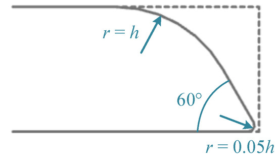 The value of the time step, Δt, was determined according to the Courant–Friedrichs–Lewy (CFL) condition [24], and the Courant number, CC = u·Δt/Δs, should be small enough, where u is the local flow velocity at a grid element, and Δs is the grid size along the flow direction. In this paper, the value of Δt was 5 × 10−5 s, and the maximum value of CC was about 0.6.