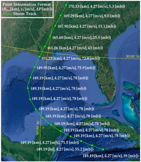 , and longitude of the storm track,