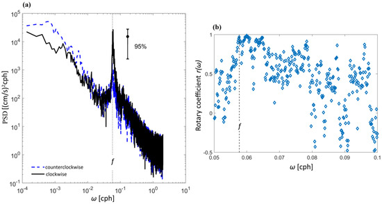 As follows from the classic theory (for example, [28,35]) for the Northern Hemisphere, inertial oscillations appear in the clockwise component. One of the characteristics of a random vector process is the rotary coefficient r(ω), proposed in [35]: