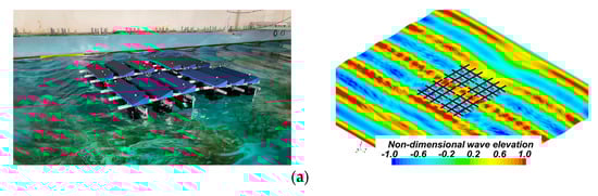 On the other hand, since the coast and sea are exposed directly to natural disturbance (e.g., seawater, wind, and waves), technologies that can minimize the effects of waves and actively reduce fluctuations are needed [4,5,6]. Owing to the periodic motion of waves, fatigue loads are generated on structures (e.g., floating bodies, supporting frames, panels, and coupling devices), and a design is needed for supporting structures considering structural stability. To consider the stability of a floating solar power generation system, experiments and numerical studies on the motion performance and connections between adjacent platforms are still underway.
