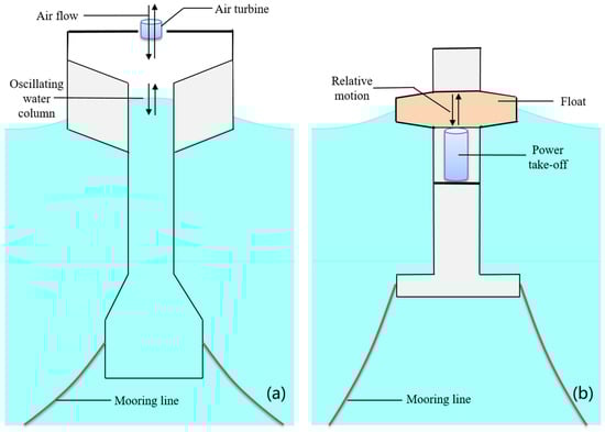 Types of wave energy capture applicable for marine buoys: (a) OWC spar type; (b) two-body point absorber.