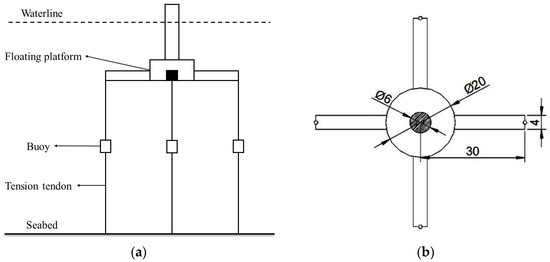 The focus of energy exploitation is shifting from the land to the ocean, and the tension leg structure is one of the main structural forms in the fields of offshore oil and gas and offshore floating wind power development [1,2]. The process of oil and gas exploitation and wind power generation requires the floating platform to have excellent motion performance. Although tension leg platforms have good motion performance compared with semi-submersible and column platforms, they still produce extreme surge responses to extreme environmental conditions, even leading to damage to the tension tendons [3], and large surge motions by the platform will aggravate the interference of wind turbines in wind farms and reduce the power generation efficiency of wind turbines [4]. Therefore, the motion response of the floating platform is the main consideration in the process of structural design [5,6].